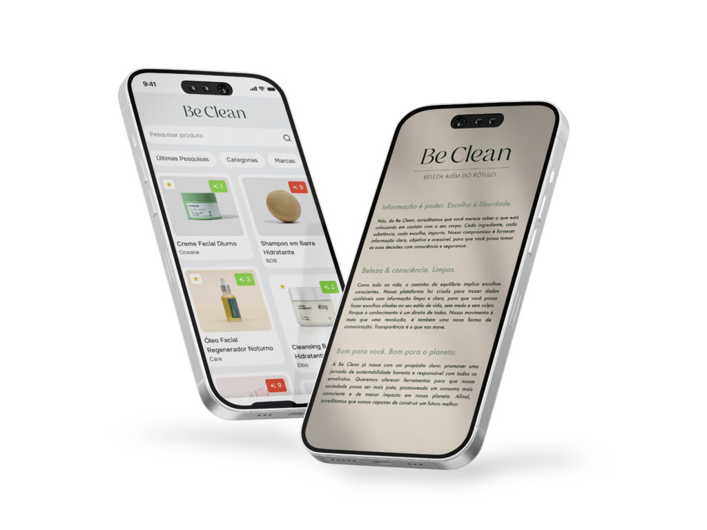 A Be Clean é a criação de um movimento que acredita, informa e impulsiona a beleza limpa e sustentável. Através de um aplicativo para celular e um site informativo, que oferece um banco de dados contendo milhares de produtos cosméticos e de higiene pessoal, para consulta. O objetivo é que as pessoas conheçam os produtos que estão comprando e consumindo, estabelecendo uma relação de transparência (tanto com a indústria, quanto com o consumidor), sendo uma plataforma de informação.
